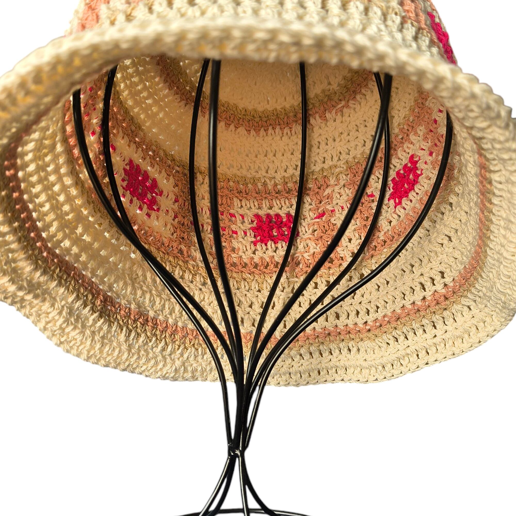 ピンクのスクエア柄がポイントのknit hat。カジュアルなスタイルにぴったりで、季節問わず幅広く活躍するアイテムです。コーディネートに華やかさを加えます。