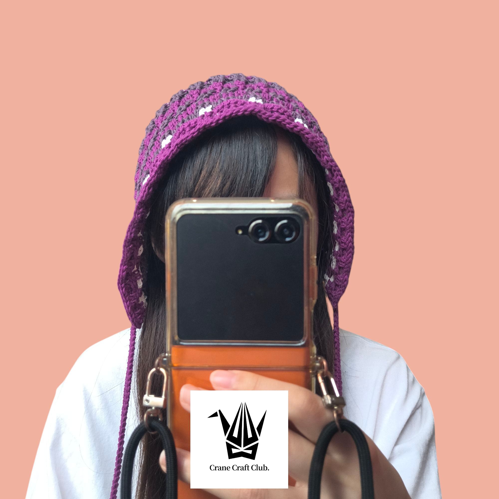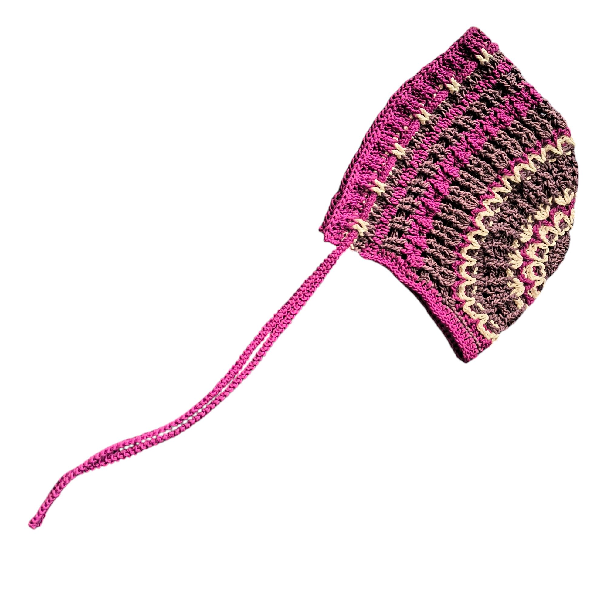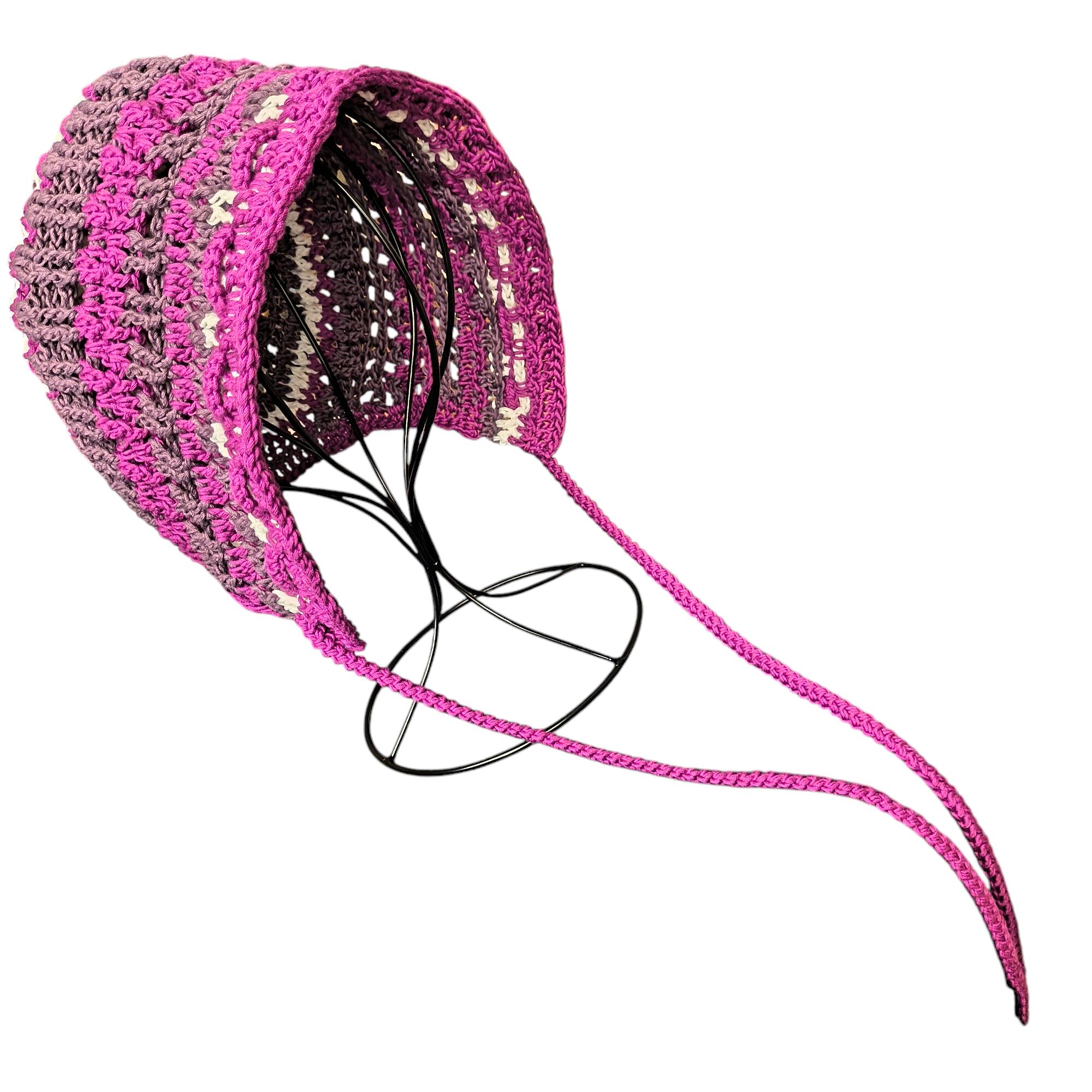 特徴的な編み目で少し透け感のあるボンネット