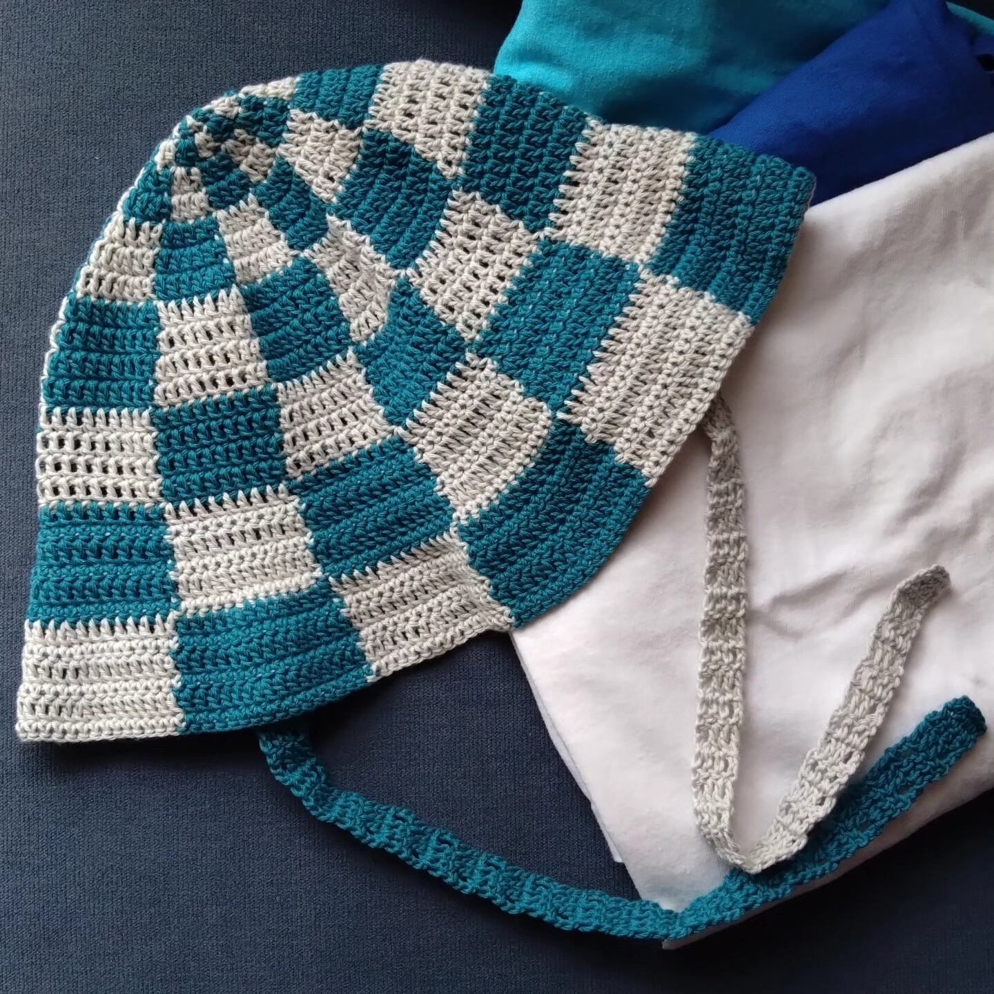 2wayボンネット帽子は、そのまま被るもよし、リボンを結んでアレンジも可能です。