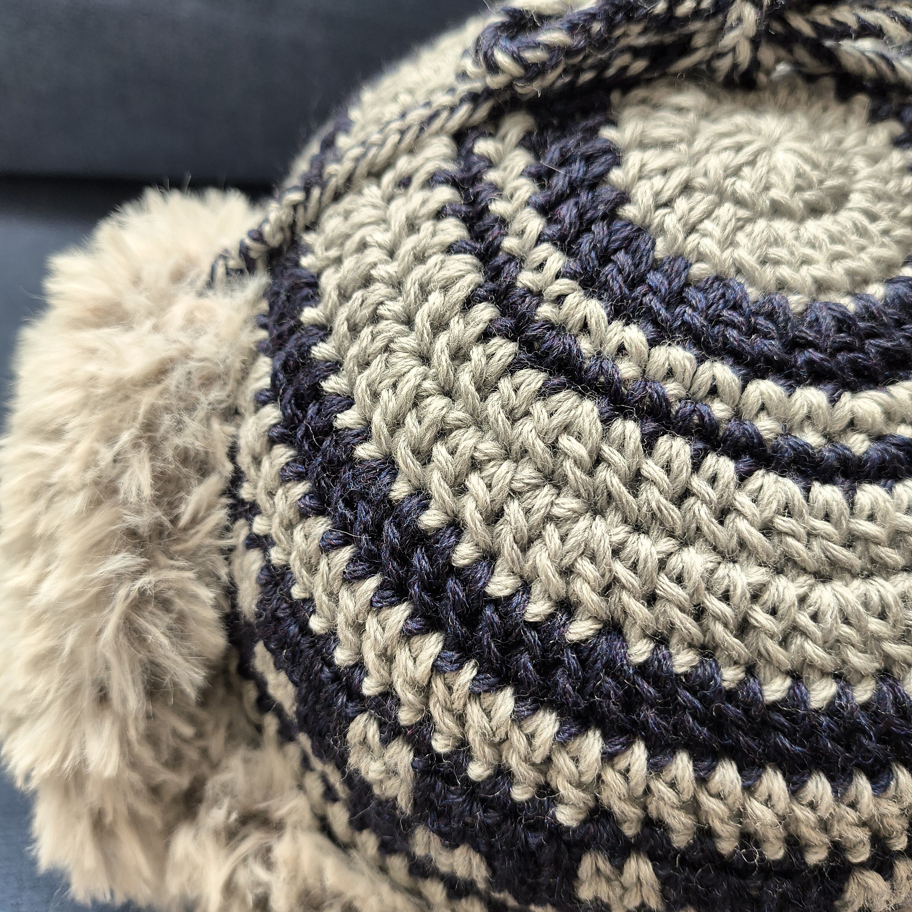 個性的でスタイリッシュなネイビーブルーのフライトキャップ。高級感のあるファーが、見た目だけでなく、冬の寒さからしっかりと守ってくれる機能性も兼ね備えています。カジュアルなファッションからシックなスタイルまで、幅広いコーディネートにマッチするアイテムです。