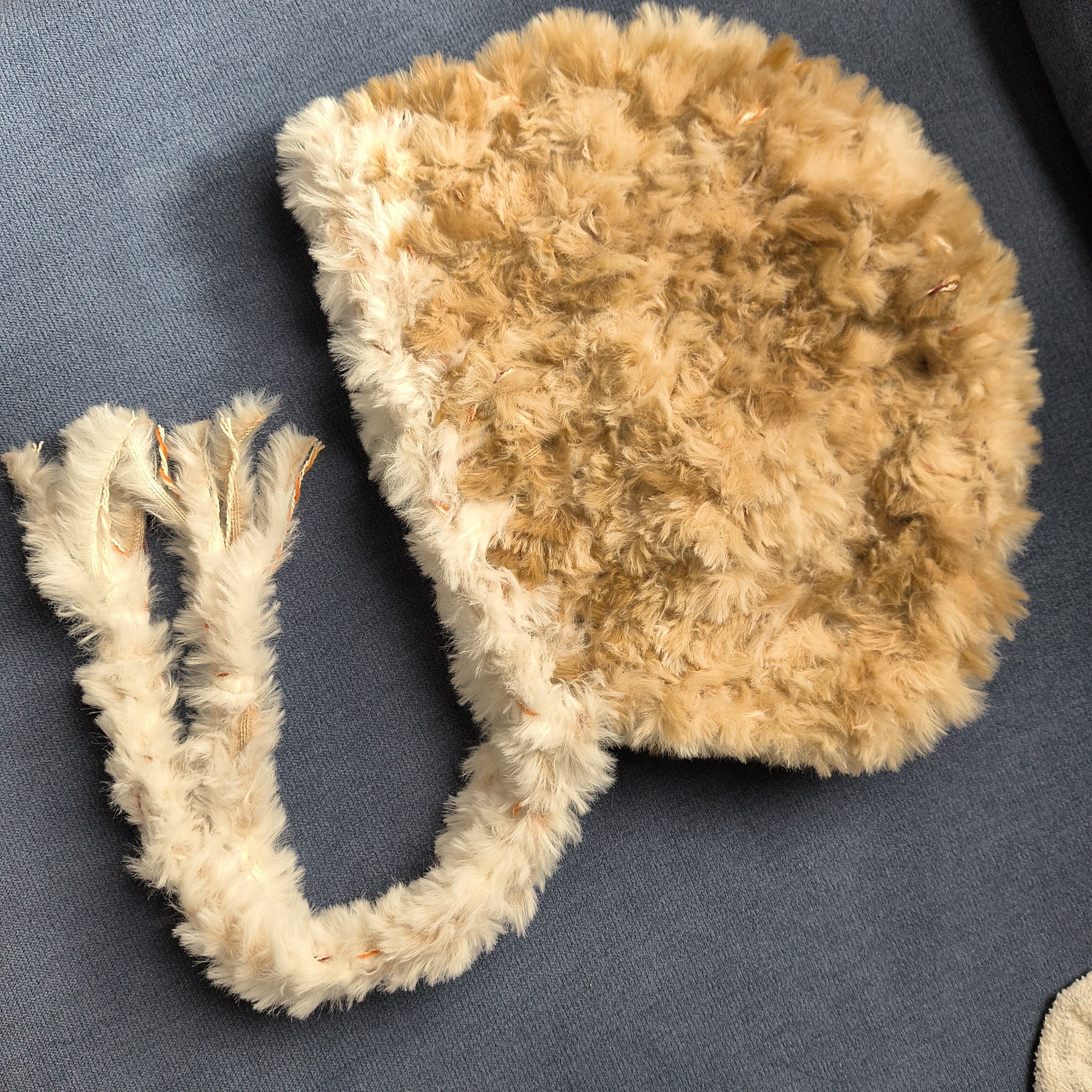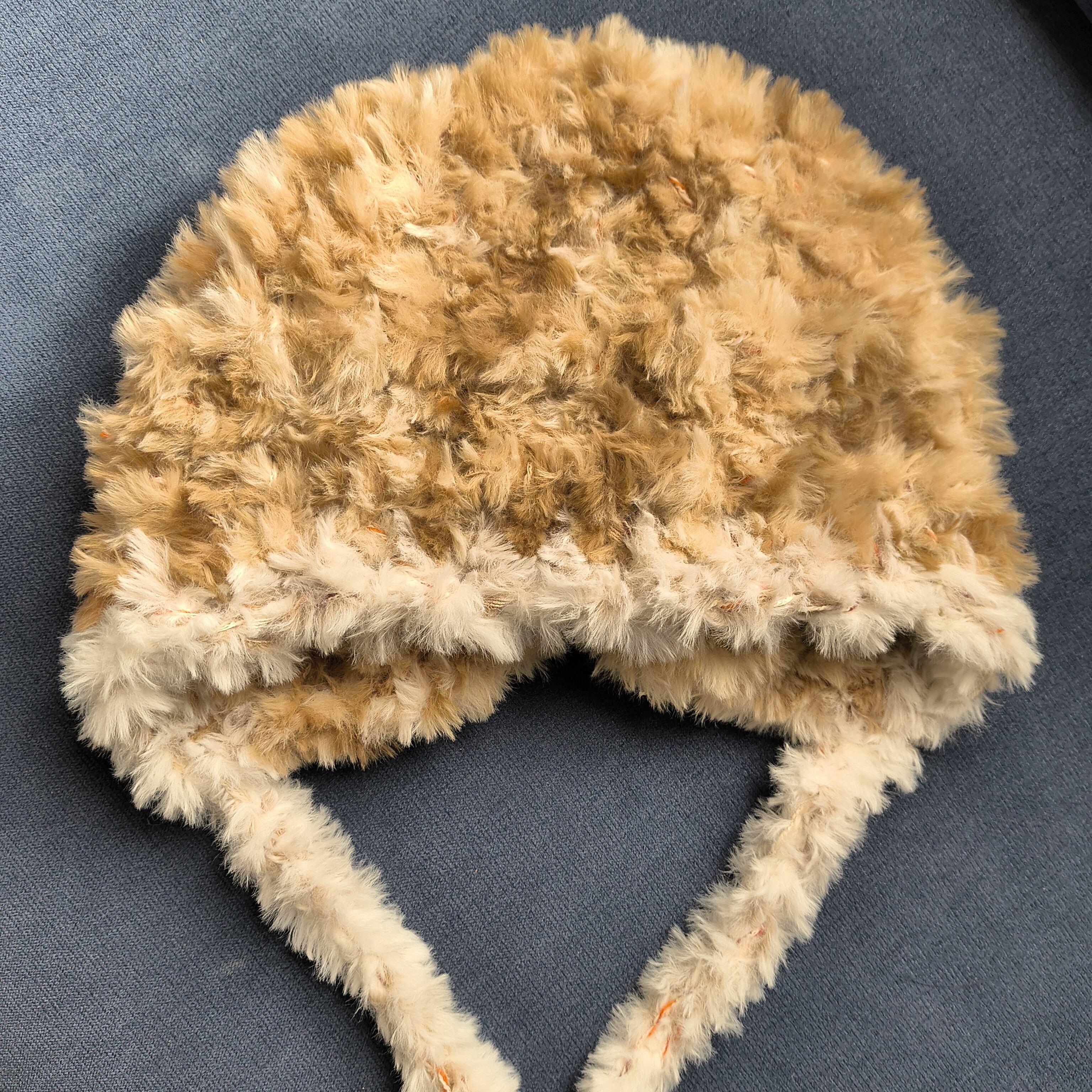 【24-77】hood fur beanie(brown×White×orange mix)