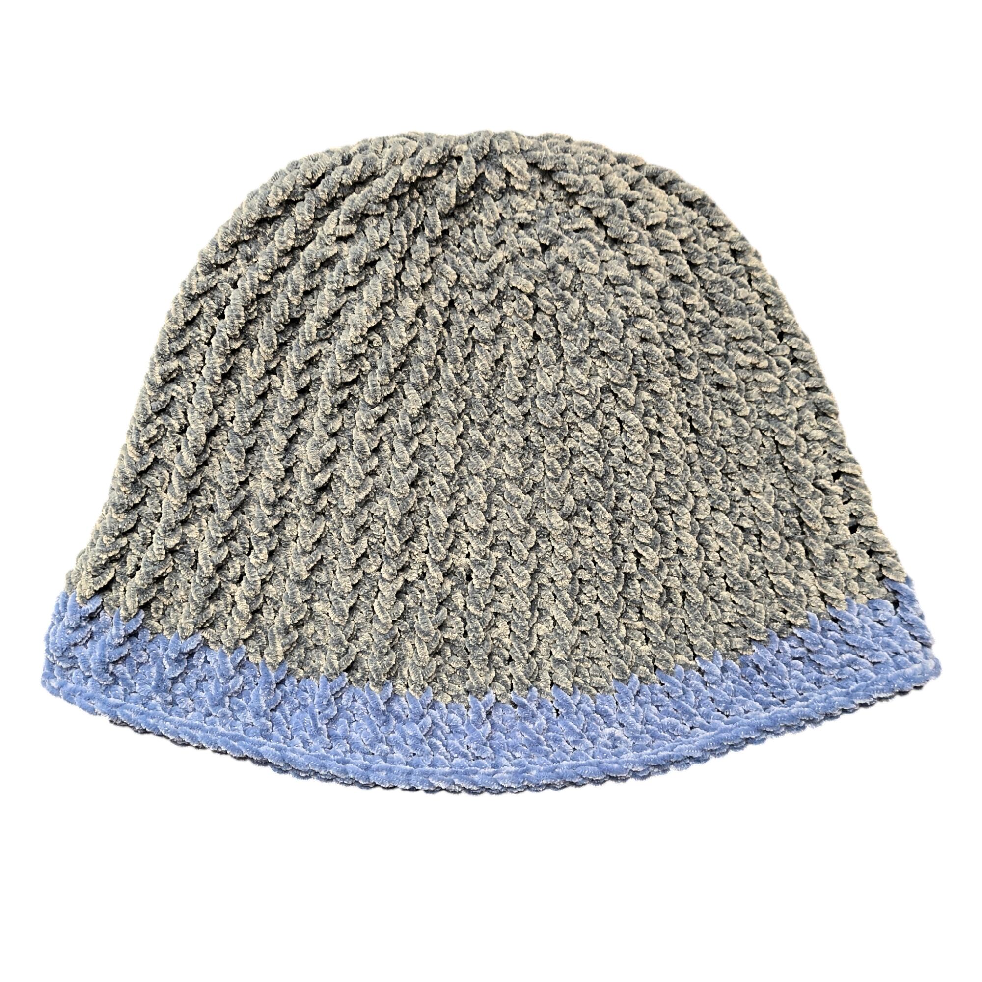 グレー×ブルーのモールベルハット。オシャレなルックスで、日常使いから特別なシーンまで幅広く活躍します。どんなコーデにも合わせやすいアイテムです。
